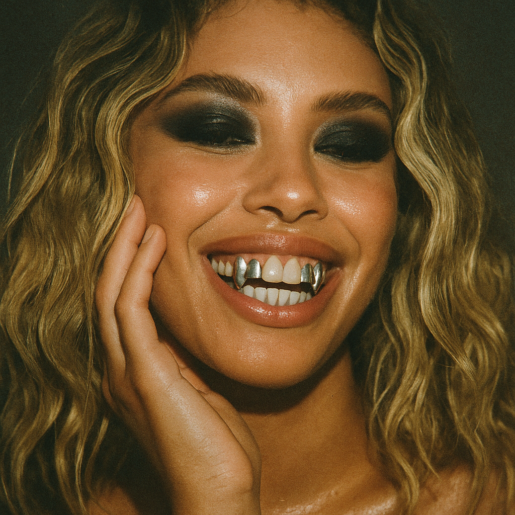 Each grill you see was made for someone else’s teeth—our jewelers freestyle the design unless you include specific notes *after* ordering. Final looks vary based on your unique tooth shape.